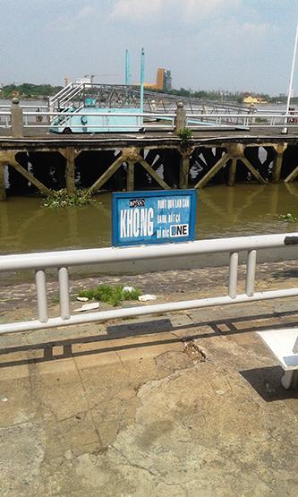 Đã từ nhiều năm nay, trên hàng rào sắt ở ven bờ sông Sài Gòn (đoạn Công viên Bạch Đằng, Q.1, TP.HCM), cơ quan chức năng cho gắn rất nhiều những tấm bảng với nội dung cấm: đánh bắt cá, xả rác, vượt qua lan can, để nhắc nhở mọi người dân và du khách không được vi phạm! Tuy nhiên, dường như những tấm bảng cấm đó được treo, gắn lên đó dường như chỉ để… cho vui, chứ trên thực tế vẫn có không ít người bất chấp sự nguy hiểm vượt qua lan can để tiến sát bờ sông câu cá, mà không thấy ai tới nhắc nhở, ngăn cản gì cả (?!). Ngoài ra, tình trạng xả rác xuống ven bờ kè của không ít người vô ý thức, sống thiếu trách nhiệm với môi trường và cộng đồng cũng khiến cho hình ảnh ven sông cực kỳ nhếch nhác, ô nhiễm (ảnh).