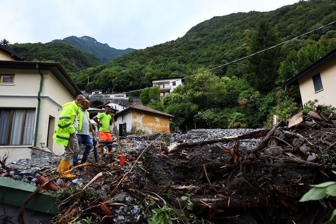 Sạt lở sau mưa lũ phá hủy nhiều căn nhà tại khu vực Laglio ở miền Bắc nước Ý hồi cuối tháng 7. Ảnh: Reuters