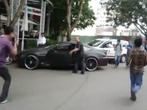 Trên YouTube còn đưa thông tin chiếc xe này được trang bị động cơ V10, dung tích 5L và công suất 500 mã lực nhưng được chủ nhân của nó “độ” lại nâng công suất lên 700 mã lực. Hình ảnh trên clip cho thấy chiếc xe “độ” đã tăng tốc trên một đoạn đường ngắn lên tốc độ cực cao, rồi tài xế bất ngờ đạp thắng khiến chiếc xe quay đầu 180 độ. Trong lúc xe bị quay đầu, phần đuôi va vào chiếc taxi 7 chỗ ngồi đang đậu ven đường (ảnh) và làm ngã chiếc xe gắn máy khiến thanh niên trên xe bị thương ở chân.