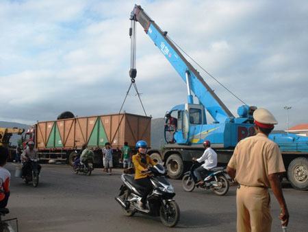 Ngay sau khi vụ tai nạn xảy ra, lực lượng CSGT công an TP Quy Nhơn đã có mặt tại hiện trường, điều tiết giao thông và huy động phương tiện cứu hộ chiếc xe container này.