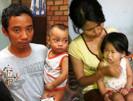 | Bé Đức và Nhi trong vòng tay của bố, mẹ |