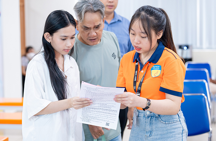 Thí sinh và phụ huynh được tư vấn thông tin xét tuyển vào Trường ĐH Công nghệ TP.HCM