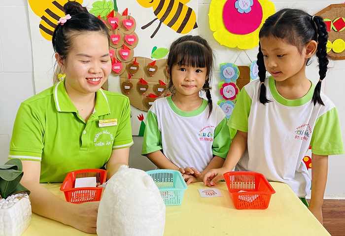 HĐT ở cơ sở giáo dục mầm non, phổ thông công lập hoạt động thiếu hiệu quả. Ảnh: Một giờ dạy – học của cô trò Trường Mầm non Thiên Ân (TP.HCM)
