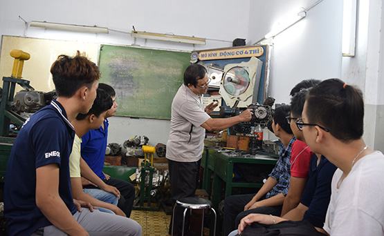 Học viên học nghề sửa xe gắn máy