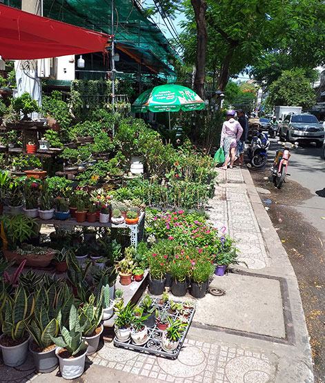 Từ vài năm nay, khoảng vài trăm mét lề đường bên số nhà lẻ, đầu đường Vĩnh Viễn (đoạn tiếp giáp với đường Lê Hồng Phong), thuộc địa bàn phường 2, quận 10, TP.HCM, xuất hiện một cái “chợ” bán hoa cây cảnh bày biện hàng hóa ngổn ngang chiếm dụng gần như kín mít hết phần diện tích vỉa hè. Không giống như hàng rong xe đẩy sáng dọn ra chiều dọn vào, cái “chợ” hoa, cây cảnh này án ngữ cố định hết ngày này qua tháng khác, khiến cho phần vỉa hè ở đoạn đường này không còn tác dụng dành cho người đi bộ! Rất nhiều người dân hàng ngày qua lại đây, cũng như không ít người dân sống trong khu vực đều tỏ ra bức xúc trước thực trạng “chợ” hoa, cây cảnh của một số cá nhân chiếm dụng vỉa hè nhưng vẫn được tồn tại nhiều năm nay(?!) (ảnh chụp ngày 26-7-2019)