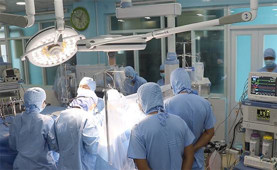 Chuyển giao kỹ thuật, đầu tư trang thiết bị hiện đại cho BV tuyến dưới là một trong những giải pháp giảm tải BV. Trong ảnh: Một ca phẫu thuật tim tại BV Q.Thủ Đức