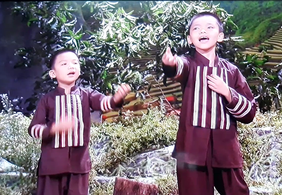 | Ngọc Thuận và Đình Phong trong tiết mục song ca “Lì và Sáo” phát sóng trên HTV9 ngày 28-4-2018 |
