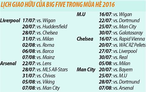 Trong số các đội Premier League, Liverpool sốt sắng nhất. Juergen Klopp đã làm việc với các cầu thủ từ ngày 2/7 (bao gồm cả Balotelli cùng tân binh Mane) và lên một lịch trình giao hữu bận rộn với 9 trận cả thảy.