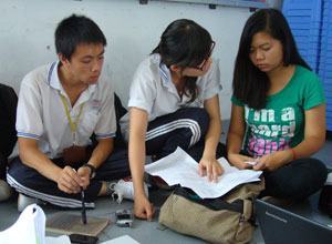 Sinh viên Trường ĐH Ngoại ngữ – Tin học TP.HCM  học nhóm tại trường. Ảnh: M.Tâm