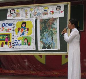 Khác với những buổi học bình thường, hành lang tất cả các lớp học đều rực rỡ sắc màu với những câu biểu ngữ tiếng Anh với đầy đủ sắc màu, hình dạng. Đó có thể chỉ là những câu nói rất đơn giản được phát ngôn hàng ngày, nhưng dưới bàn tay khéo léo của các em HS, những câu biểu ngữ đó dường như trở thành thông điệp gửi gắm tới tất cả những ai ngắm nhìn nó. Tại sân khấu chính, HS các lớp đều hồi hộp chờ đợi những tiết mục “cây nhà lá vườn” do “người nhà mình” thể hiện. Đó là những ca khúc tiếng Anh từng được nhiều nghệ sĩ nổi tiếng trên thế giới biểu diễn, những vở kịch với những lời lẽ dí dỏm theo kiểu… học trò. Hay câu chuyện cổ tích Nàng công chúa ngủ trong rừng của tác giả An-đec-xen được HS lớp 12 chuyển thể sang ngôn ngữ “toàn cầu hóa”… Tất cả đã tạo nên một không khí “mọi người nói tiếng Anh, các lớp nói tiếng Anh” sôi nổi, khác hẳn với những giờ học nặng nề ngày thường.