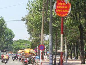 Nhiều bảng “Cấm bán hàng rong, cấm đậu xe” của Công an phường 3, quận Gò Vấp, TP.HCM (Hình 3), và bảng “Cấm buôn bán hàng rong, lấn chiếm lòng đường, vỉa hè” (Hình 4) được dựng lên ở Công viên Gia Định bao lâu nay, nhưng tình trạng buôn bán hàng rong vẫn diễn ra ngay ở khu vực có bảng cấm.