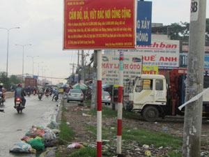 Dưới chân một bảng “Cấm đổ rác” ở đường Trường Chinh, phường Tân Thới Nhất, quận 12 là một… đống rác ?!? (Hình 5).