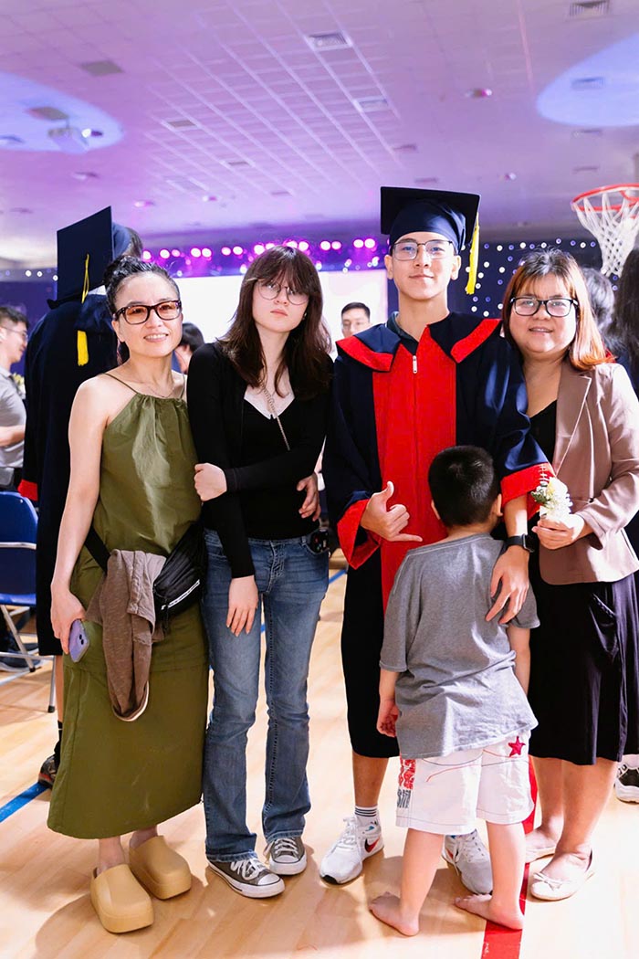 Minh Toàn cùng gia đình trong lễ tốt nghiệp THCS