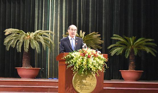 Bí thư Thành ủy Nguyễn Thiện Nhân phát biểu tại buổi lễ