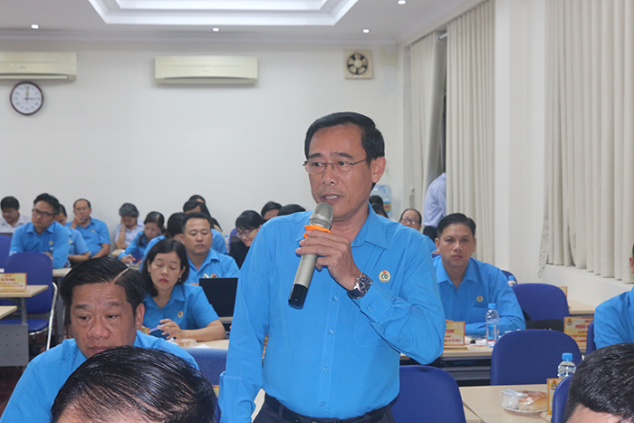 Tại hội nghị, ông Võ Khắc Thái – Phó Chủ tịch Thường trực Liên đoàn Lao động TP.HCM trao đổi cùng các đại biểu về những nội dung cần bổ sung và những nội dung không thể bổ sung vào văn kiện.