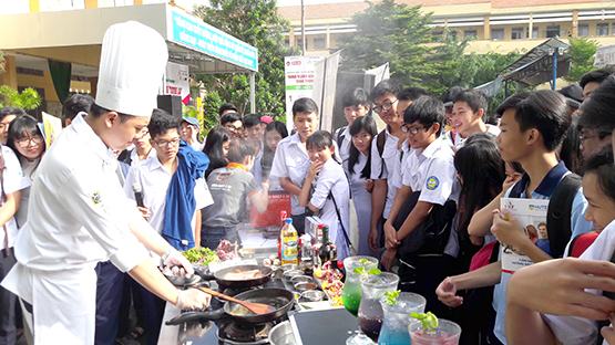 Hc sinh THPT xem biu din ngh nu ăn ti mt chương trình tư vn hưng nghip do Báo Giáo dc TP.HCM t chc