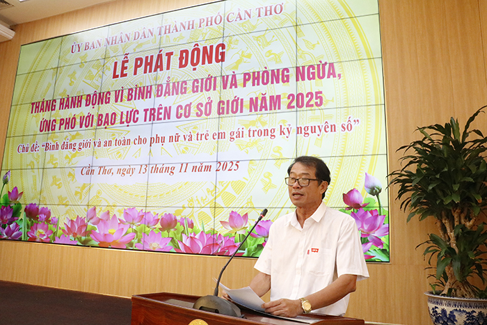 Ngày 13-11, UBND TP.Cần Thơ tổ chức Lễ phát động Tháng hành động vì bình đẳng giới và phòng ngừa, ứng phó với bạo lực trên cơ sở giới năm 2025. Lễ phát động được kết nối trực tuyến đến 103 UBND xã, phường trên địa bàn TP.