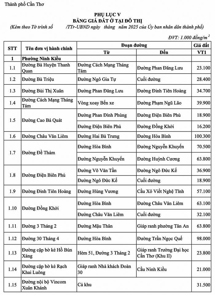 Đặc biệt là việc ban hành các tiêu chí xác định vị trí, số lượng từng loại đất, bảng giá đất, danh mục khu đất đấu thầu dự án đầu tư và danh mục khu đất dự kiến thực hiện dự án thí điểm. Những nội dung này nhằm bảo đảm công tác quản lý, khai thác và sử dụng hiệu quả các nguồn lực đất đai, tạo cơ sở pháp lý quan trọng phục vụ yêu cầu phát triển kinh tế – xã hội của TP trong giai đoạn mới. Theo đó, tờ trình Dự thảo Nghị quyết quy định bảng giá đất trên địa bàn TP.Cần Thơ gồm 11 điều, kèm phụ lục bảng giá với các loại đất gồm: đất trồng lâu năm; đất trồng cây lâu năm; giá đất làm muối; đất ở tại nông thôn; đất ở đô thị; đất khu công nghiệp, cụm công nghiệp; đất thương mại, dịch vụ; đất cơ sở sản xuất phi nông nghiệp; đất trong khu công nghệ cao.
