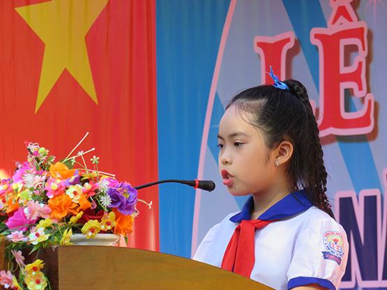 Em Nguyễn Ngọc Bích Ngân, lớp 4A2, đạt giải Vô địch ngày hội Wecode năm 2019, tại Quảng Châu, Trung quốc, thay mặt HS toàn trường, hứa quyết tâm “học tập tốt, rèn luyện đạo đức tốt”