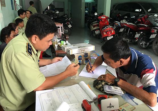 Lc lưng qun lý th trưng TP.Cn Thơ lp biên bn thu gi thuc lá nhp lu. Ảnh: Đ.P