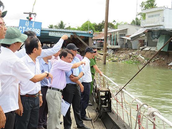 Đoàn kiểm tra khảo sát điểm sạt lở tại khu vực Thới Lợi, P.Thới An, Q.Ô Môn. Ảnh: Đ.P