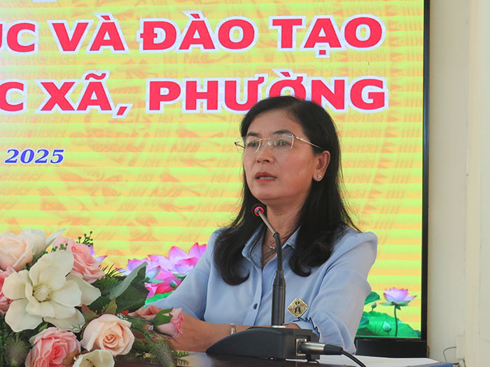 Cô Trần Thị Huyền cũng đề nghị UBND các xã, phường phối hợp thực hiện một số nhiệm vụ trọng tâm như: Rà soát cơ sở vật chất trường lớp, trang thiết bị để chuẩn bị cho năm học mới. Kiểm tra đánh giá học sinh theo quy định của Bộ trưởng Bộ GD-ĐT, hồ sơ điện tử, học bạ số. Thực hiện khai thác và báo cáo đúng tiến độ trên cơ sở dữ liệu ngành. Đẩy mạnh công tác đào tạo nghề cho người lao động, đặc biệt quan tâm anh em bộ đội xuất ngũ. Tổ chức các cuộc thi, kỳ thi, hội thi cấp xã để tham gia cấp TP theo quy định. Thành lập Hội đồng chuyên môn/ Tổ bộ môn để hỗ trợ chuyên môn cho các trường. Chỉ đạo xét khen thưởng cho viên chức, người lao động tại các cơ sở giáo dục mầm non, tiểu học và trung học cơ sở theo phân cấp quản lý…