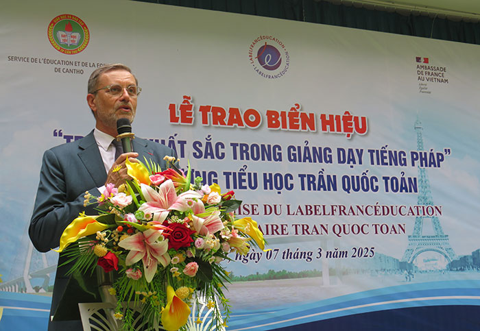 Ngày 7-3-2025, trong không khí trang trọng, ngài Olivier Brochet – Đại sứ Cộng hòa Pháp tại Việt Nam – đã trao tặng biển hiệu kiểm định chất lượng giáo dục Label FrancEducation của Bộ Ngoại giao và châu Âu Pháp cho Trường Tiểu học (TH) Trần Quốc Toản, quận Ninh Kiều, TP.Cần Thơ.