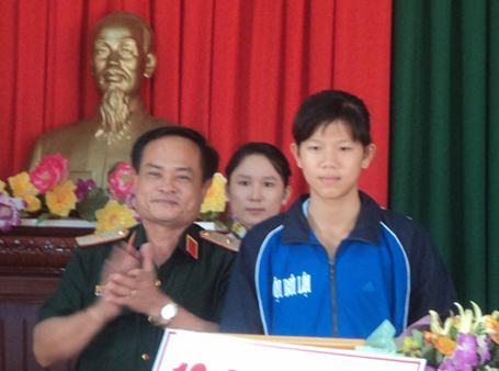 Lễ khen thưởng kiện tướng bơi lội quốc gia Nguyễn Thị Ánh Viên tại Trung tâm Thể dục Thể thao Quốc phòng 4 (Quân khu 9), Cần Thơ ngày 15/6.