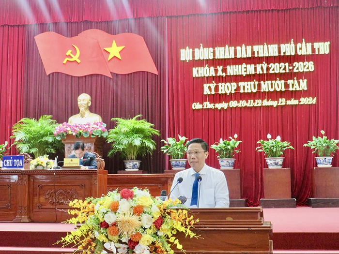 Tại kỳ họp, Chủ tịch UBND TP.Cần Thơ Trần Việt Trường trình bày việc thực hiện nghị quyết của HĐND TP về kinh tế xã hội, quốc phòng an ninh năm 2024. Theo đó, Cần Thơ có 14/17 chỉ tiêu đạt và vượt kế hoạch.