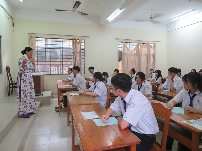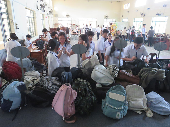 Đảm bảo là khu vực biệt lập và an toàn, thuận tiện giao thông, Điểm thi THPT Nguyễn Việt Hồng có 17 phòng thi với 397 thí sinh… Trong công tác chuẩn bị, trước đó Ban Giám hiệu trường đã bố trí địa điểm bảo quản vật dụng cá nhân của thí sinh và các tài liệu, vật dụng không được phép mang vào phòng thi; bố trí lực lượng học sinh tình nguyện hỗ trợ. Có bảng tên bảo quản vật dụng cá nhân theo từng phòng thi để thí sinh gửi và nhận lại nhanh chóng. Khi làm thủ tục trước khi thi, các thầy cô giám thị luôn ân cần nhắc thí sinh về quy chế thi, đặc biệt không được mang điện thoại vào phòng thi…