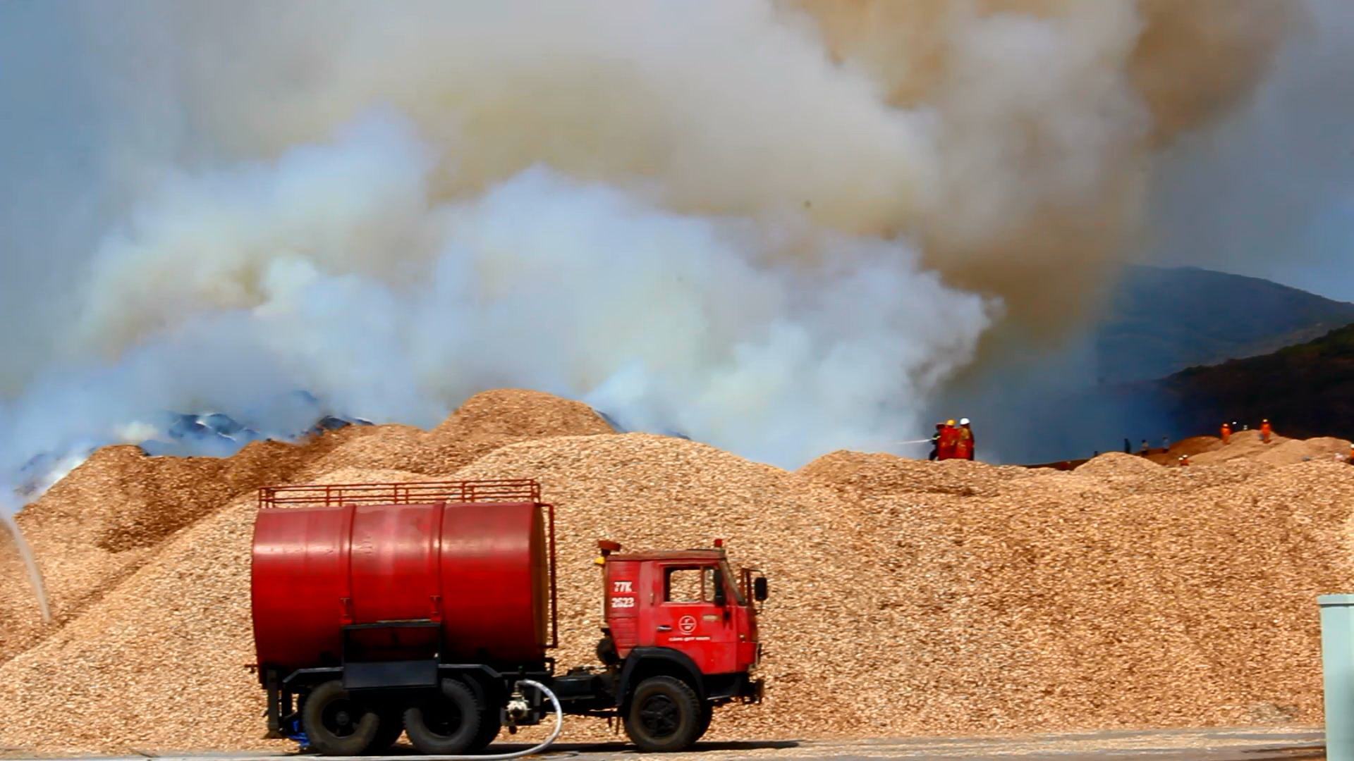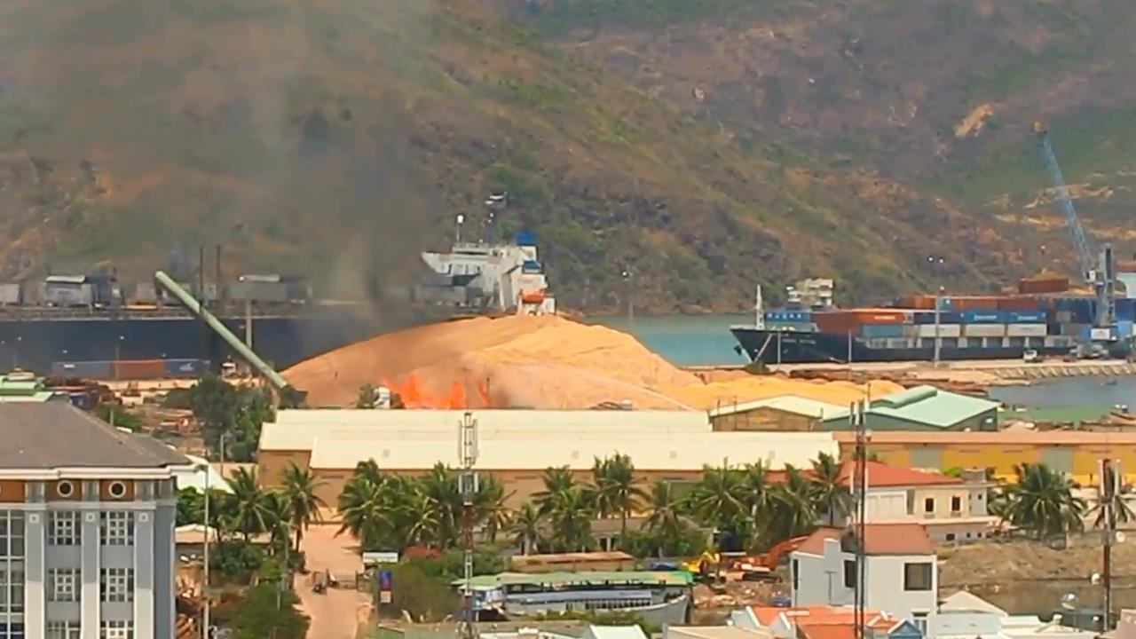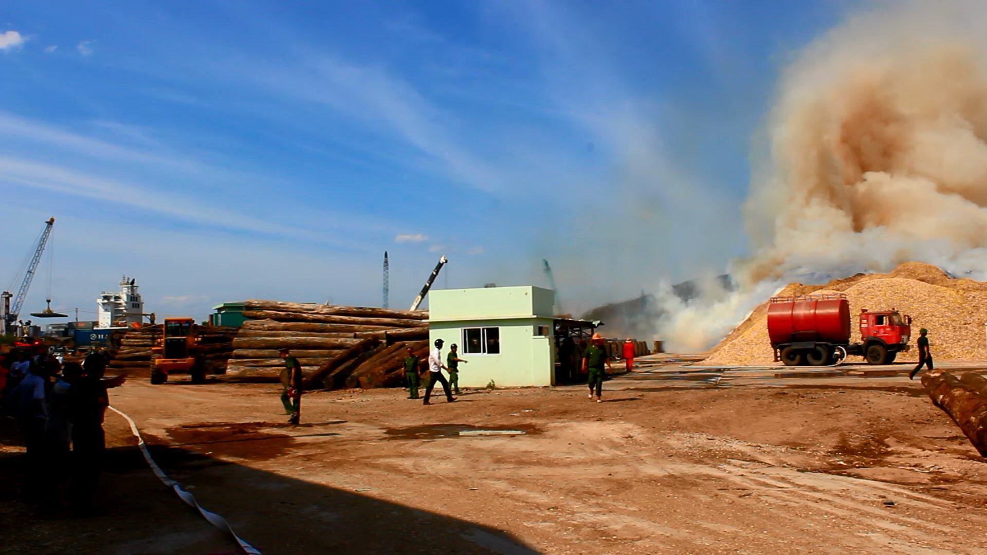 Đám cháy tại Cảng Quy Nhơn xuất phát từ bãi chứa gỗ đang chờ xuất lên tàu đi nước ngoài