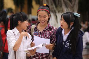Các thí sinh thi ĐH 2012 vui mừng vì làm bài tốt. Ảnh: Anh Khôi
