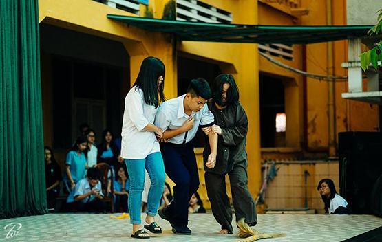 Học sinh đang diễn vở kịch về tác hại của ma túy
