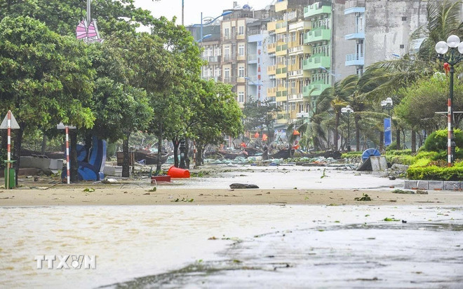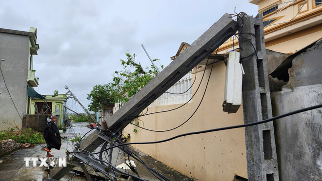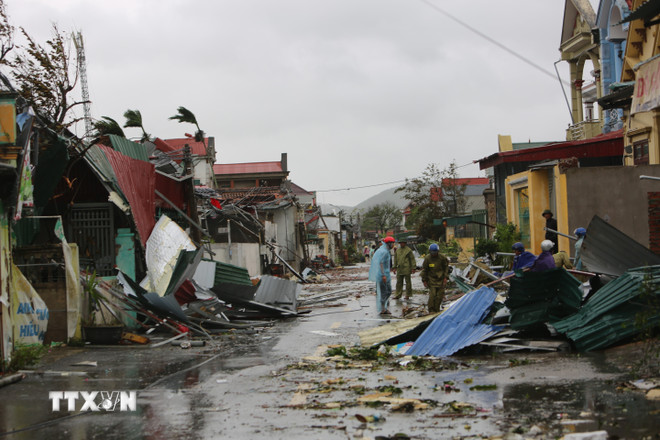 Sau khi bão số 10 đi qua, tại nhiều xã, phường trên địa bàn tỉnh Thanh Hóa bị thiệt hại nặng nề, nhà dân bị sập, cây và cột điện đổ ngổn ngang, nước biển dâng ngập vào nhà, khách sạn, cửa hàng…