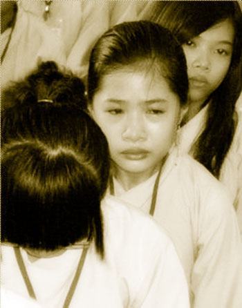 | Khóc thút thít khi nghe giảng về công ơn cha mẹ. |
