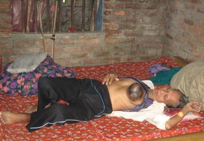 Chị Dinh, người hàng xóm tốt bụng thường qua nhà giúp đỡ tâm sự với chúng tôi: “Gia đình bà Khương thuộc diện xóa đói giảm nghèo, mỗi lúc có trợ cấp, ủy ban xã đều để cho bà một suất. Nhưng đến cái ăn còn không đủ thì nói đâu ra tiền mà chữa bệnh, mà bà con họ hàng nghèo khổ cả lấy gì mà nhờ vả”.