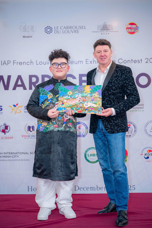Ngày 16, 17-1-2026, bức tranh “Trung thu quê em” của Khang sẽ được trưng bày tại Bảo tàng Nghệ thuật Louvre, Paris (Pháp). Đây là bức tranh đạt giải nhì cuộc thi MiaArt “Triển lãm tại Bảo tàng Louvre Pháp” năm 2025-2026 do Báo Thiếu niên tiền phong và Nhi đồng phối hợp cùng MiaArt Việt Nam tổ chức.
