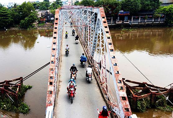 Theo thông tin từ Sở GTVT TP.HCM, cầu Phú Long cũ được xây dựng vào năm 1913, nối quận 12 (TP.HCM) và thị xã Thuận An (tỉnh Bình Dương) sẽ bị tháo dỡ vào thời điểm cuối năm nay nhằm đảm bảo an toàn cho người và phương tiện (ảnh). Cầu có chiều dài 251,71 mét, kết cấu bằng thép, mặt cầu nhỏ hẹp, đang trong tình trạng xuống cấp. Do tổng thể cây cầu quá yếu, nên những năm qua chỉ cho phép xe hai bánh và người đi bộ lưu thông.
