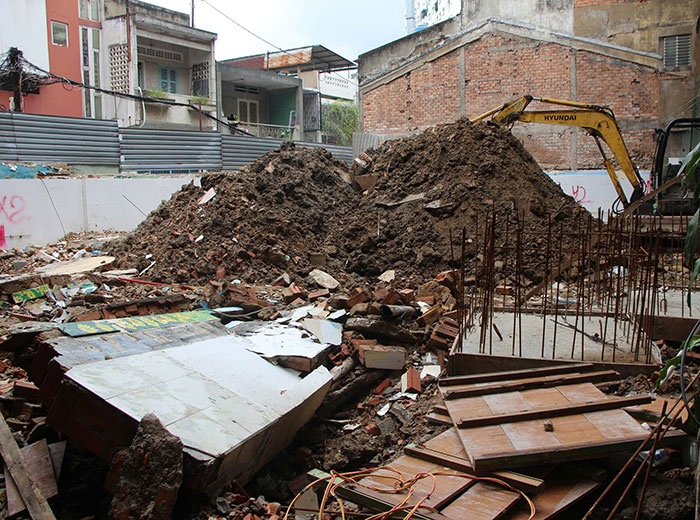 Có mặt tại Trường THCS Chu Văn An, phường Cầu Ông Lãnh, TP.HCM chiều 15-8, công trình cải tạo, sửa chữa, nâng cấp trường vẫn còn khá ngổn ngang. Sân trường đang được đào lên để làm móng cho khu phụ trợ. Các dãy lớp học, nhà vệ sinh vẫn chưa được hoàn thiện.