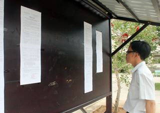 | Phụ huynh xem thông báo các khoản thu phí cao tại Trường tiểu học Bắc Phan Thiết – Ảnh: Quế Hà |