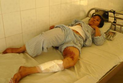 Chị Thanh đang điều trị vết thương tại Viện bỏng Quốc gia (Ảnh: Bình Lê)
