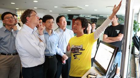 Việt Anh (giơ tay) trình bày với Bill Gates dự án MyWalk do mình thiết kế.