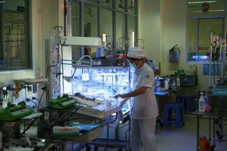 Hiện tại, cháu bé đã không còn phải trợ thở bằng máy nhưng phải nằm giường sưởi ở nhiệt độ 36 – 37 độ C, chích thuốc kháng sinh và cháu đã ăn được sữa.