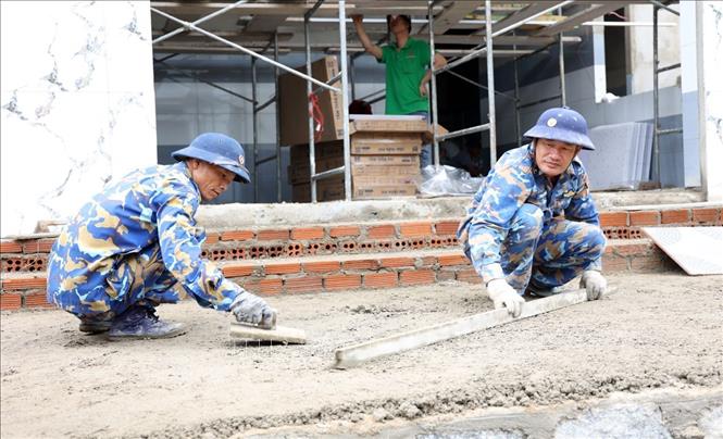 Có mặt tại công trường, phóng viên TTXVN ghi nhận hình ảnh những người lính hải quân miệt mài làm việc từ sáng sớm đến chiều muộn. Với khí thế thần tốc thi công, thần tốc về đích, chỉ sau thời gian 20 ngày thi công từng viên gạch, tấm tôn, khung cửa được dựng lên và thành hình ngôi nhà vững chắc. Đó là mồ hôi công sức và nhiệt huyết của cán bộ, chiến sỹ Lữ đoàn 162 dành cho các hộ dân.