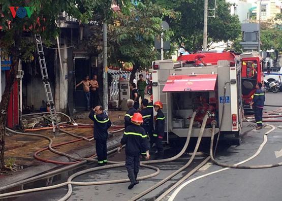 | Cản sát PCCC nỗ lực dập tắt đám cháy |