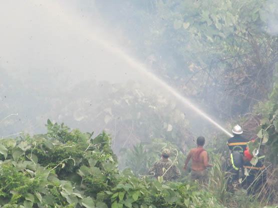 | Lực lượng chức năng khống chế cháy ở rừng Nam Hải Vân |