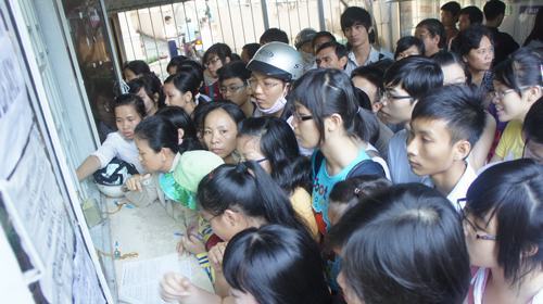 Sáng 6-6, khi các học viên học buổi đầu tiên môn toán khối A tại Trung tâm luyện thi ĐH Gia Phan (Q.Gò Vấp), phía ngoài nhiều thí sinh vẫn đóng tiền vào học. Một phụ huynh ở Bình Phước đến tìm hiểu trước để đưa con xuống luyện thi được cán bộ trung tâm nhắn nhủ “đưa em xuống càng sớm càng tốt”.