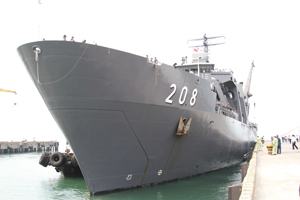 Tàu RSS Resolution (thuộc hạm đội Hải quân Singapore) tại cảng Đà Nẵng sáng 4-3 |