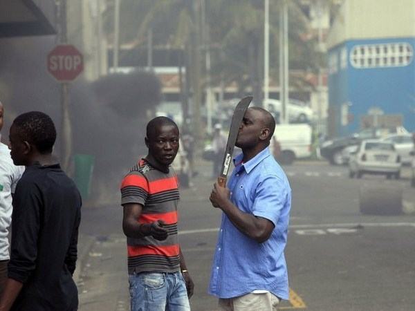 Một người nước ngoài cầm vũ khí trên đường phố Durban trong khi cảnh sát đang đụng độ với nhóm phản đối người nhập cư. (Nguồn: Getty)