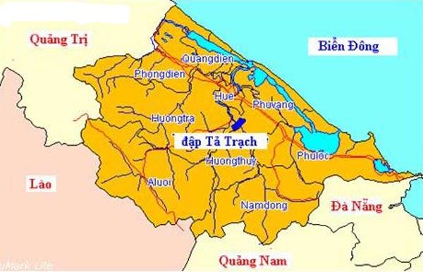 Bản đồ vị trí công trình Tả Trạch. Ảnh: Internet